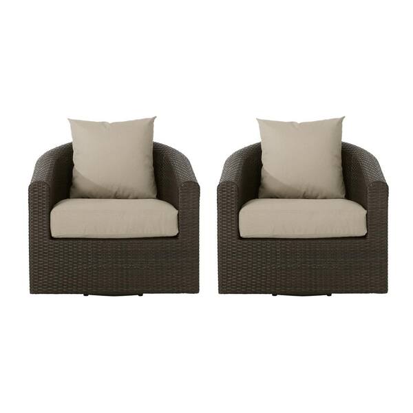 Darius Mixed Brown Removable Cushions Faux Rattan Outdoor Patio Club Chair with Khaki Cushions (2-Pack)