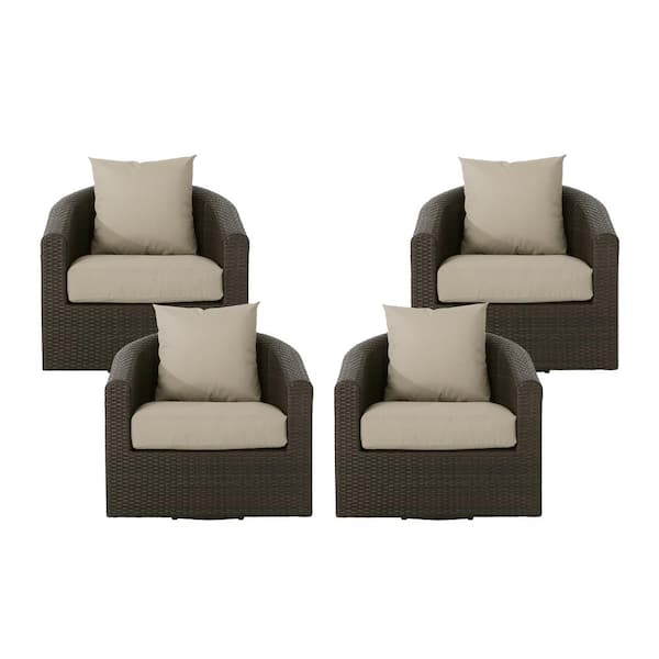 Darius Mixed Brown Removable Cushions Faux Rattan Outdoor Patio Club Chair with Khaki Cushions (4-Pack)
