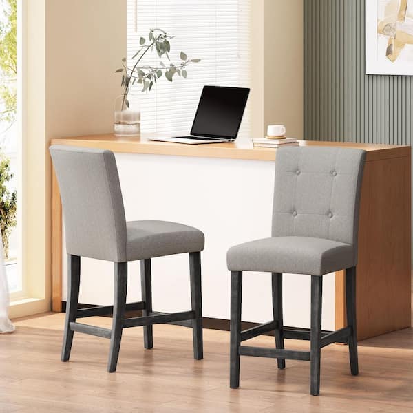 Darke 41.5 in. High Back Light Gray and Gray Button Tufted Wood Counter Stool (Set of 2) Extra Tall