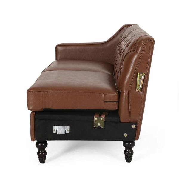 Derudder 97 in. 2-Piece Faux Leather Cognac Brown and Dark Brown Tufted Chaise Sectional