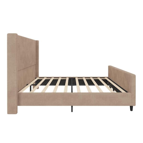 Doris Gray Wood Frame King Size Platform Bed with Wingback Headboard