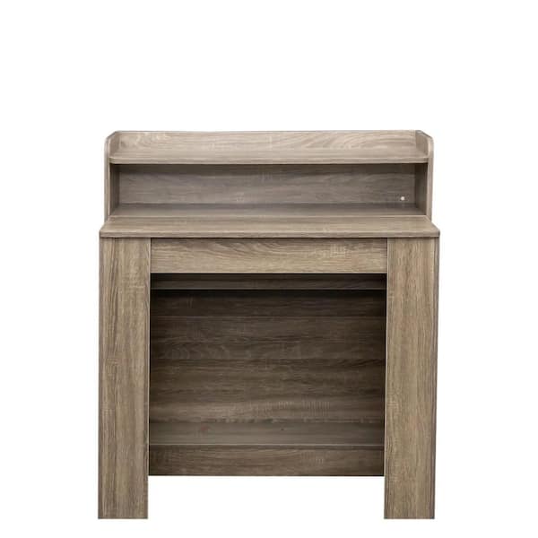 Earthy Modern Barnwood Wood 36.61 in. W Extendable Trestle Dining Table Seats-4