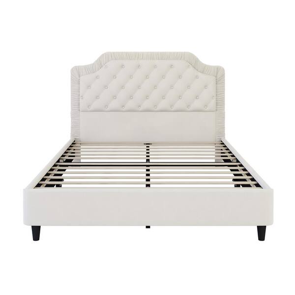 Eloise White Wood Frame Queen Size Modern Velvet Platform Bed with Storage Ottoman and Tufted Headboard