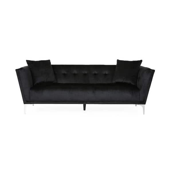 Emilio 86.5 in. Wide Square Arm Velvet Contemporary 3-Seater Sofa in Black