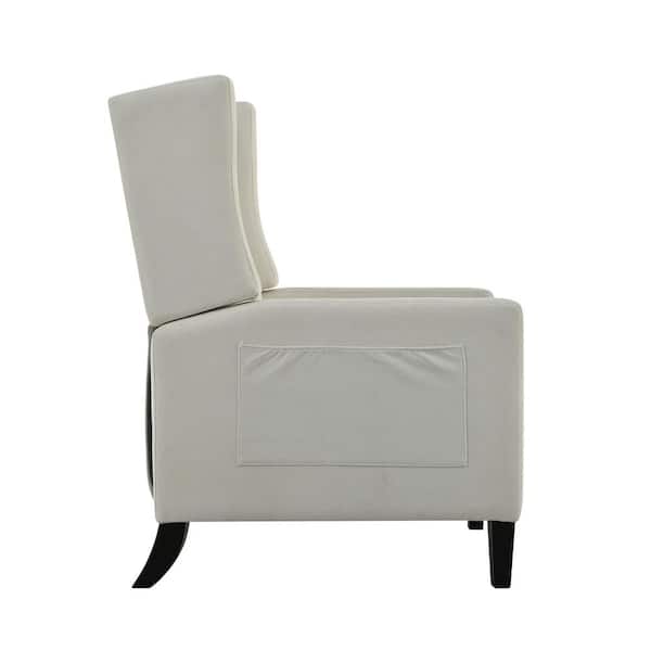Esme Beige Polyester Manual Adjustable Wingback Recliner Chair with Foldable Side Table and USB Charge Port
