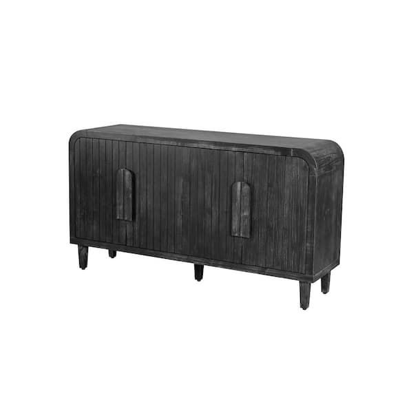Ethan Antique Black MDF 59 in. Farmhouse Curved Storage Sideboard with Adjustable Shelves