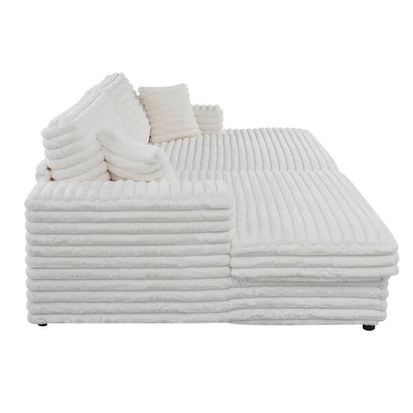 Ezekiel 86 in. Beige Corduroy Upholstered Full Size Sofa Bed with Throw Pillows