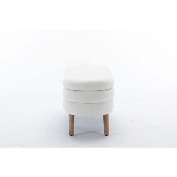 Faye Ivory Velvet Modern Oval Storage Ottoman With Wood Legs