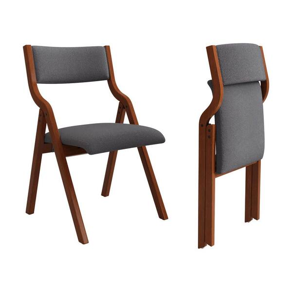 Gabriel Modern Dawn Gray and Cherry Fabric Upholstered Folding Dining Chair, Solid Wood Frame (Set of 2)