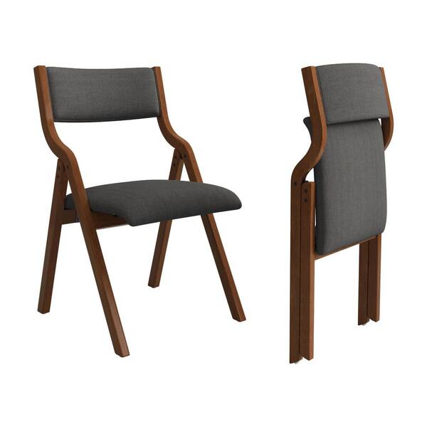 Gabriel Modern Dawn Grey and Walnut Fabric Upholstered Folding Dining Chair, Solid Wood Frame (Set of 2)