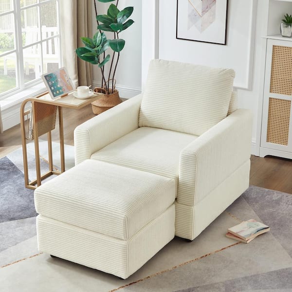 Gael Beige Corduroy Upholstered Accent Chair with Ottoman