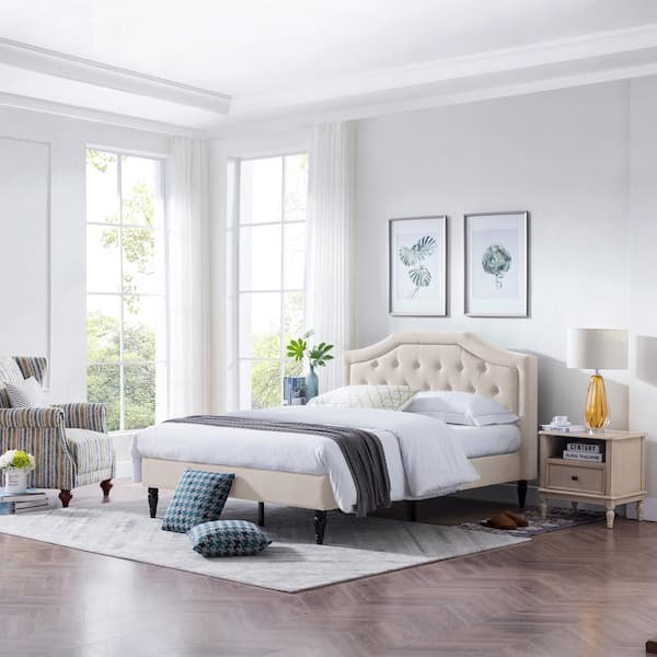 Garret Queen Fabric Upholstered Beige Bed Frame