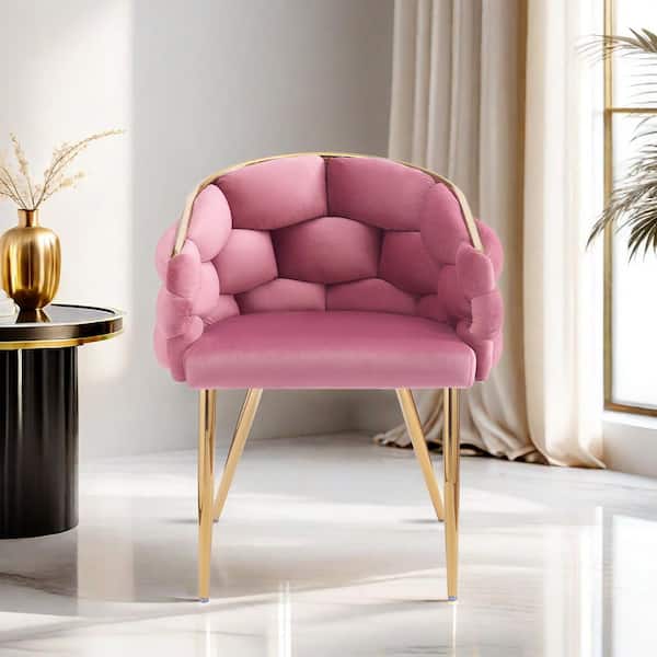 Glam Pink Velvet Upholstery Accent Arm Chairs