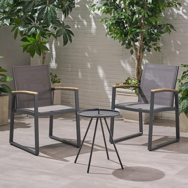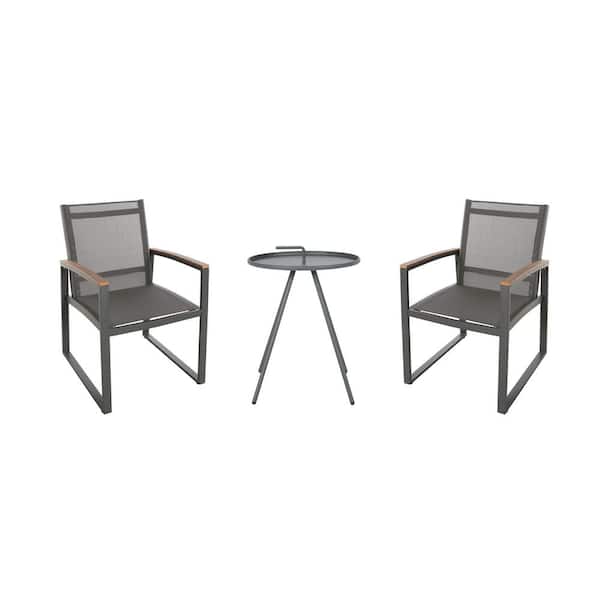 Glasgow Grey 3-Piece Aluminum and Mesh Outdoor Patio Conversation Set