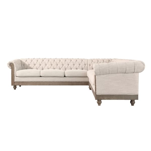 Glencoe 105 in. Flared Arm 3-Piece L-Shaped Polyester Sectional Sofa in Beige