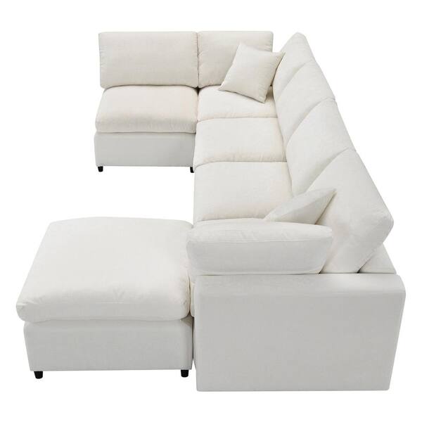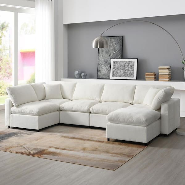Gretchen 130 in. Armrest 6-Piece U Shaped Chenille Modern Sectional Sofa in Beige with Ottoman