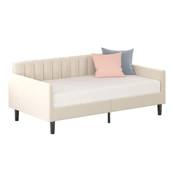 Griffant Modern Velvet Twin Size Daybed, Upholstered, Beige, without Mattress