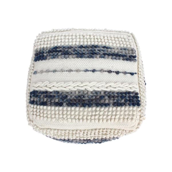 Hambo White and Blue Cube Pouf Ottoman