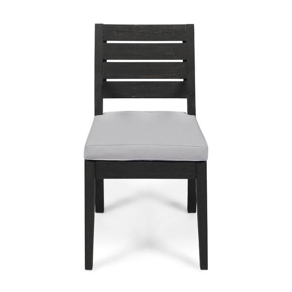 Hatherly Sandblasted Dark Gray Acacia Wood Outdoor Patio Dining Chair with Light Gray Cushions (2-Pack)