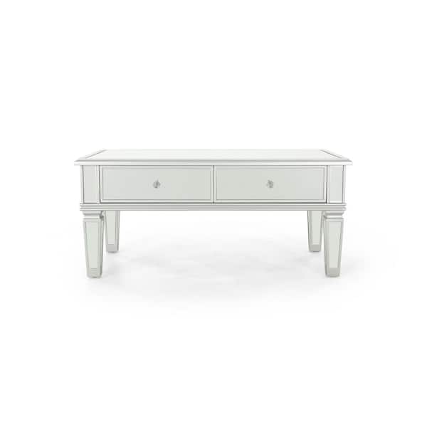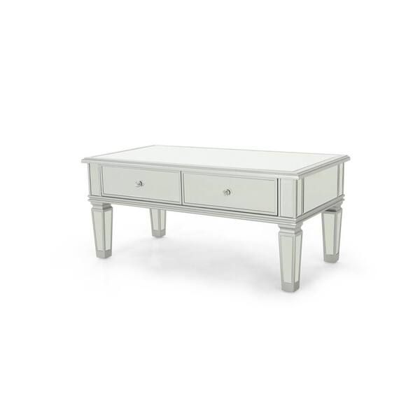 Helvetia Modern Mirrored Coffee Table with Silver Fir Wood Frame