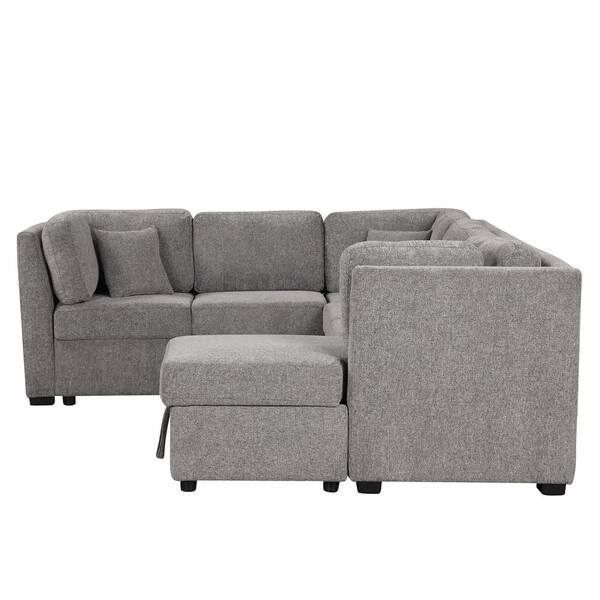 Horizon 108.6 in. Chenille Sectional Sofa in Light Grey with Pull-out Sofa Bed, Storage Chaise, USB Ports, Power Sockets