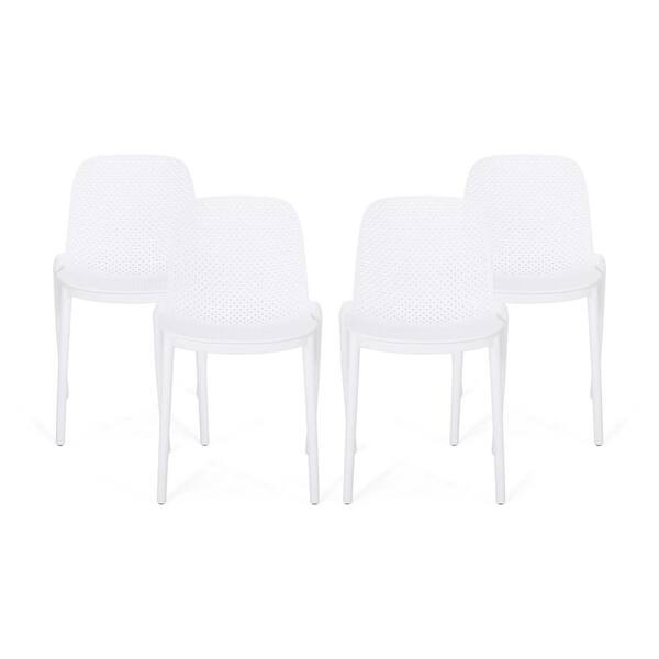 Ivy White Stackable Plastic Outdoor Patio Dining Chair (4-Pack)
