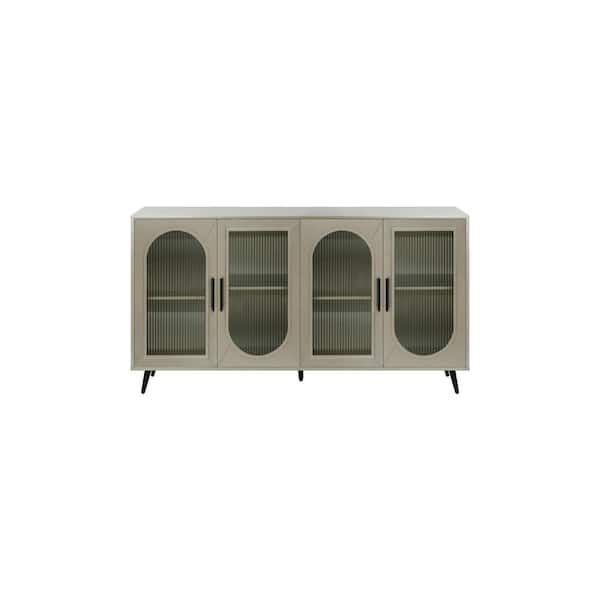 Jake 59.8 in. Antique Gold TV Stand Fits TVs up to 65 in. with Adjustable Shelves and Glass Doors