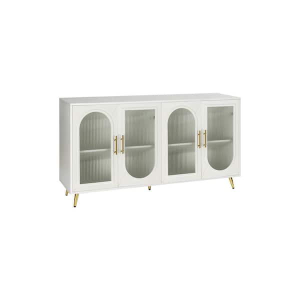 Jake 59.8 in. Antique White TV Stand Fits TVs up to 65 in. with Adjustable Shelves and Glass Doors