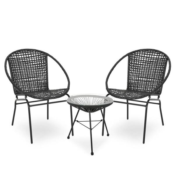 Java Black 3-Piece Faux Rattan Outdoor Patio Conversation Seating Set