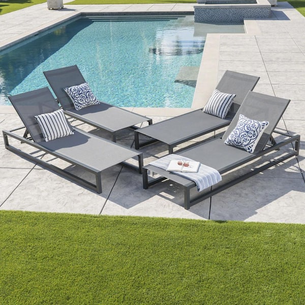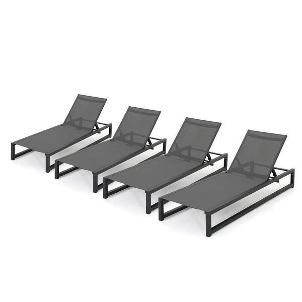 Javier Black Adjustable 4-Piece Metal Outdoor Patio Chaise Lounge