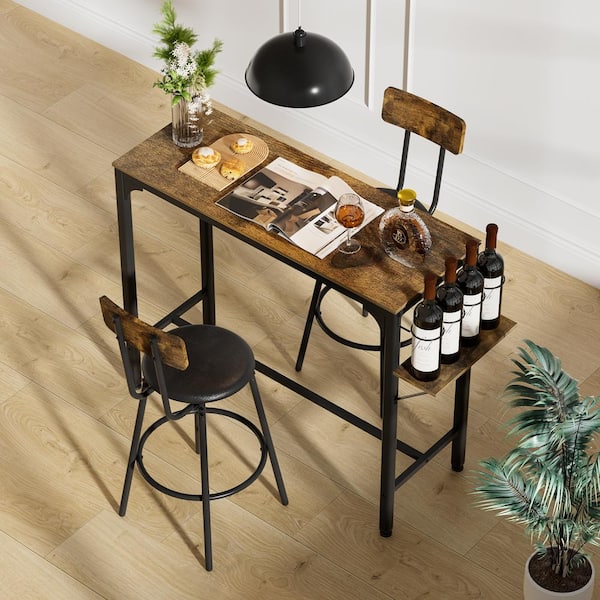 Kares 3-Piece Antique Brown Finish Iron Frame Side Table Set for 2