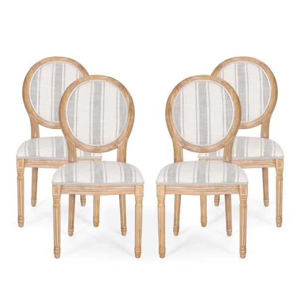 Karter Gray Stripes and Light Beige Upholstered Dining Chair (Set of 4)