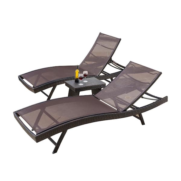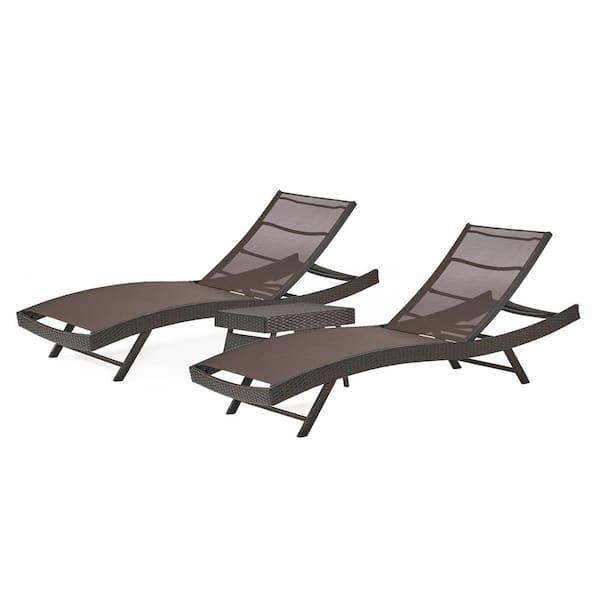 Kauai Multi-Brown 3-Piece Metal Outdoor Patio Chaise Lounge