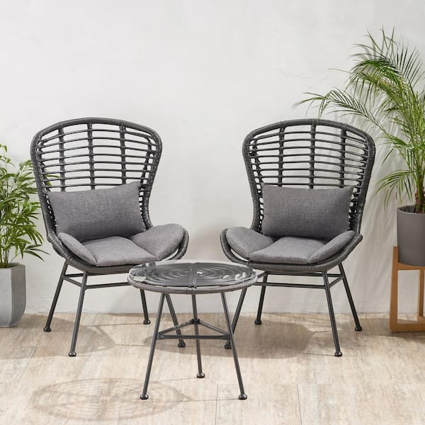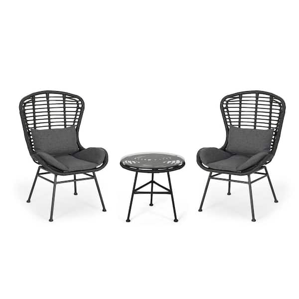La Habra Black 3-Piece Metal Outdoor Patio Conversation Set with Dark Grey Cushions