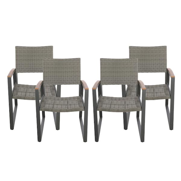 Landis Gray Aluminum Gray Wicker Outdoor Patio Dining Chairs (4-Pack)