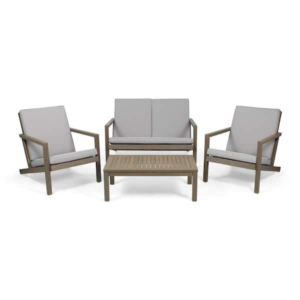 Leah Grey 4-Piece Wood Outdoor Patio Conversation Seating Set with Grey Cushions