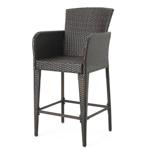 Leo Multi-Brown 3-Piece Faux Rattan Square 40 in. Outdoor Serving Bar Set