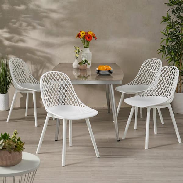 Lily White Curved Plastic Outdoor Patio Dining Chair (4-Pack)