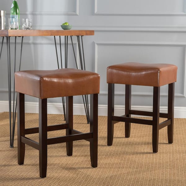 Lopez 26.75 in. Hazelnut Leather Backless Counter Stool (Set of 2)