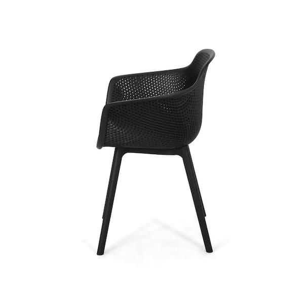Lotus Black Curved Faux Rattan Outdoor Patio Dining Chair (4-Pack)