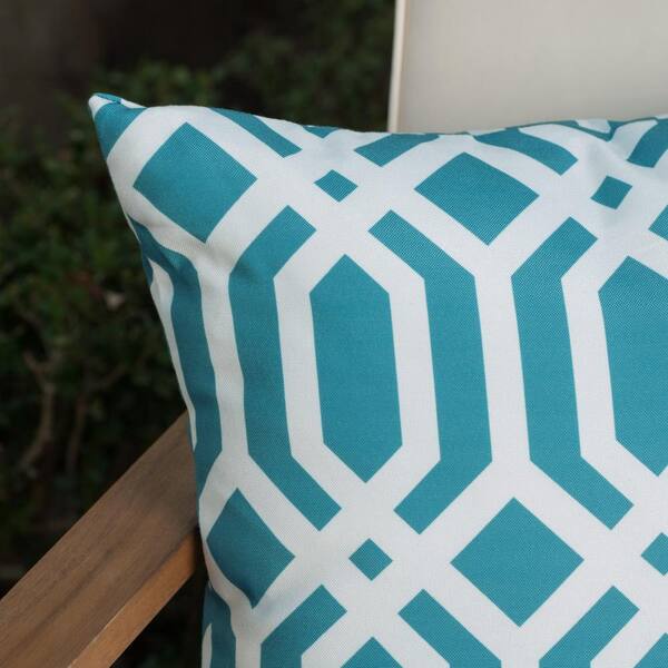 Manduka Dark Teal and White Arabesque Pattern Square Outdoor Throw Pillow