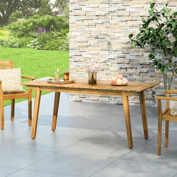 Mariposo Teak Brown Rectangle Wood Patio Outdoor Dining Table