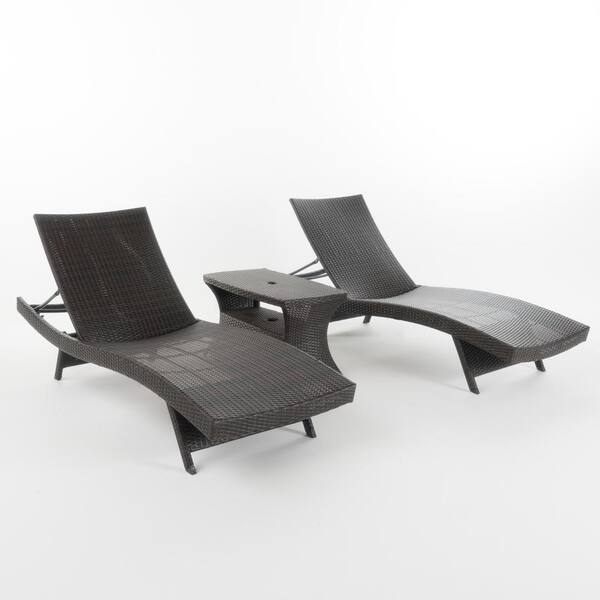 Marshall Multi-Brown Armless 3-Piece Faux Rattan Outdoor Chaise Lounge and Table Set