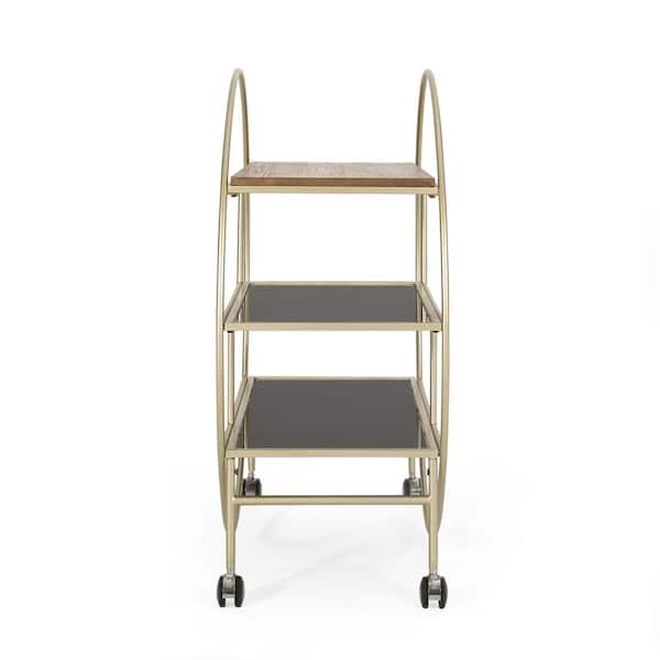 Mauhaut 36.5 in. Black, Gold, and Antique 3-Shelf Circular Bookcase with Wheels