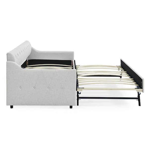 Midnas Beige Twin Size Modern Upholstered Daybed with Trundle, USB Charging, Tufted