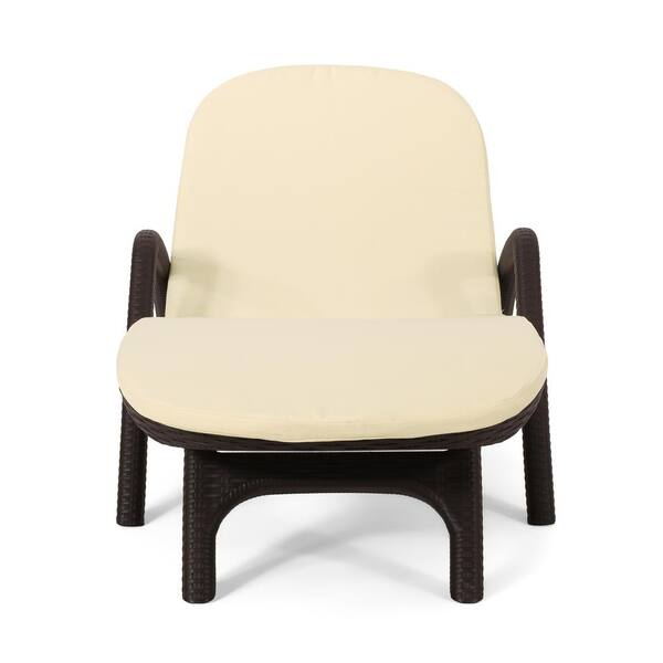 Mikael Dark Brown 1-Piece Faux Wicker Outdoor Patio Chaise Lounge with Beige Cushion