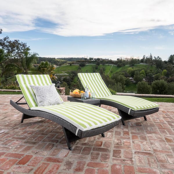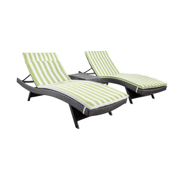 Miller Grey 3-Piece Faux Rattan Outdoor Chaise Lounge and Table Set with Green/ White Stripe Cushions