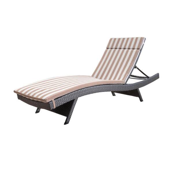 Miller Grey Armless Faux Rattan Outdoor Chaise Lounge with Brown/White Stripe Cushion