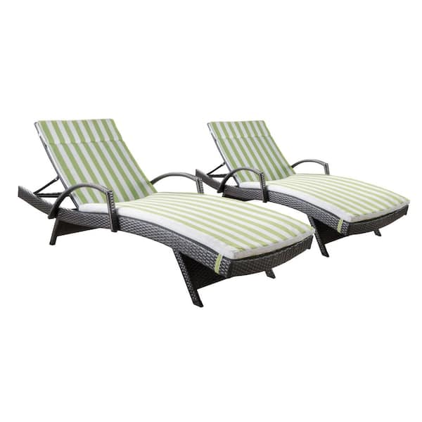Miller Multi-Brown 2-Piece Wicker Outdoor Chaise Lounge Set with Green/ White Stripe Cushions and Armrest