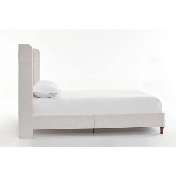 Milo Modern Ivory White Canvas Fabric Upholstered Wood Frame King Size Platform Bed with Wingback Headboard
